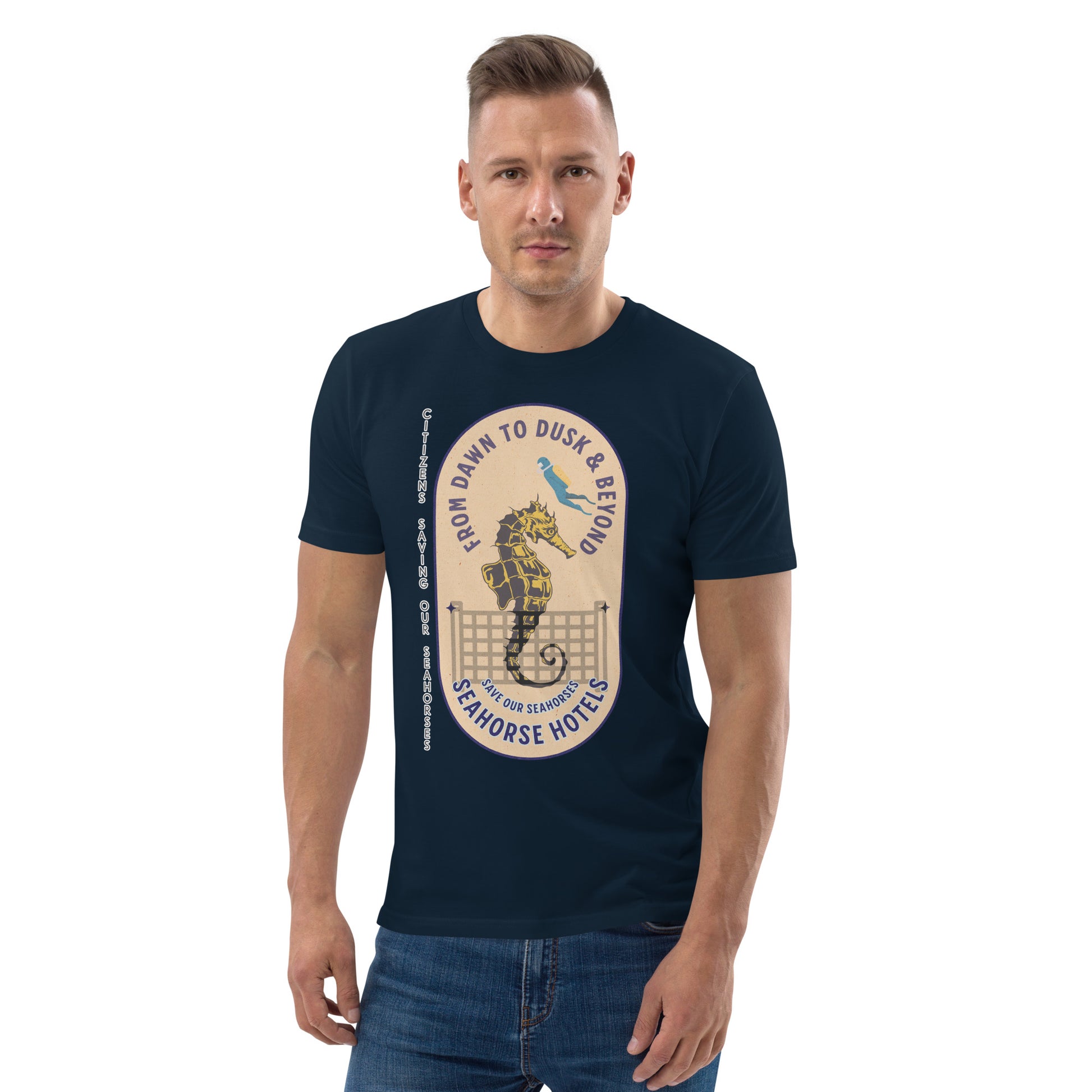 Unisex organic cotton t-shirt - SOS (Save Our Seahorses)